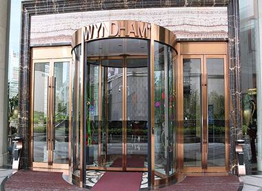 酒店彩色不銹鋼大門加工,彩色不銹鋼加工,大門是人們對(duì)酒店的第一印象,目前幾乎所有的現(xiàn)代酒店都會(huì)安裝是彩色的不銹鋼旋轉(zhuǎn)門,這幾乎成了酒店的標(biāo)配。而彩色不銹鋼大門之所以如此受歡迎,主要是因?yàn)槠渫ǔ2捎苗R面的鈦金(黑金、玫瑰金)板制作,然后中間安裝玻璃,這樣制作的門,就相當(dāng)于在玻璃外面鑲了一道反光的鏡光裝飾條,因此采用彩色不銹鋼門框,美觀大氣。